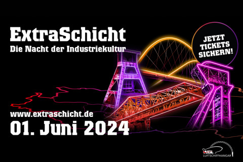 Nur, damit ihr es schon einmal amtlich habt: Am 01. Juni 2024 ist der Luftschiffhangar am Flughafen Essen/Mülheim wieder ein Hotspot bei der Extraschicht.