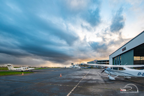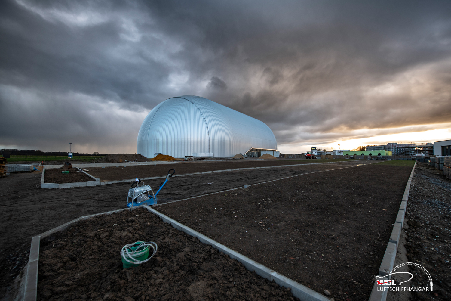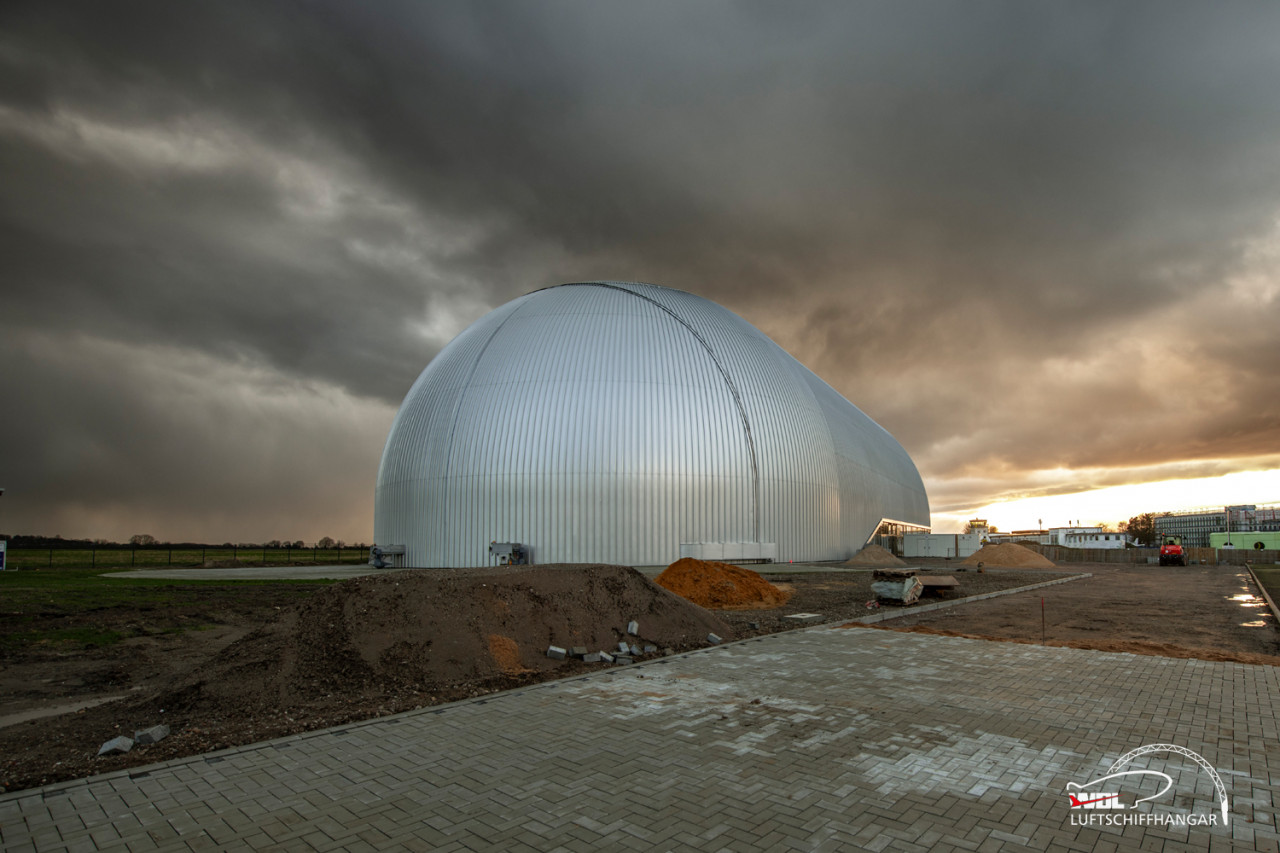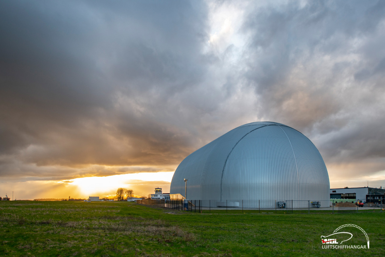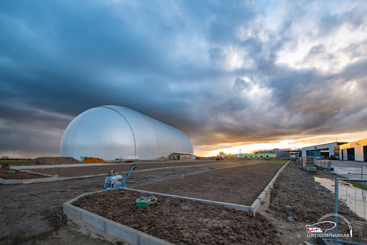 Letzten Freitag gab die Natur wieder ein fantastisches Schauspiel am Flughafen Essen/Mülheim und erzeugte eine dramatisch wirkende Kulisse über dem Luftschiffhangar, wo weiterhin fleissig an der Fertigstellung des Vorplatzes gearbeitet wird.